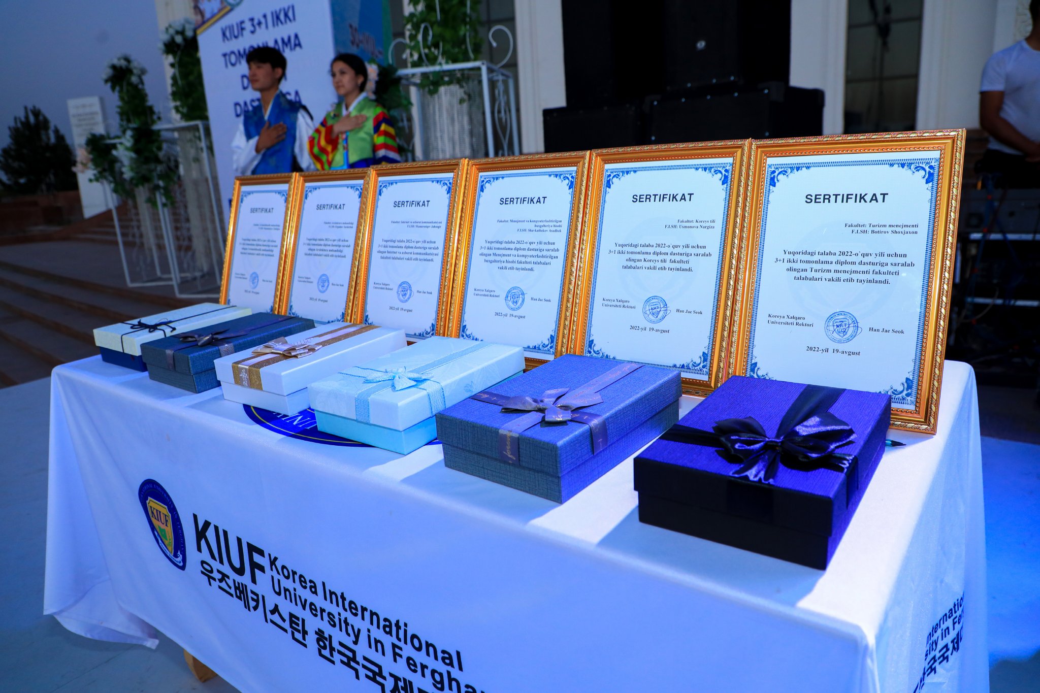 Шундан сўнг дастурга саралаб олинган талабалар таништирилиб, уларга сертификатлар ва эсдалик совғалари топширилди. Талабалар ҳам билдирилган ишончни оқлаб, намунали хулқ билан яхши ўқишга ваъда бердилар.