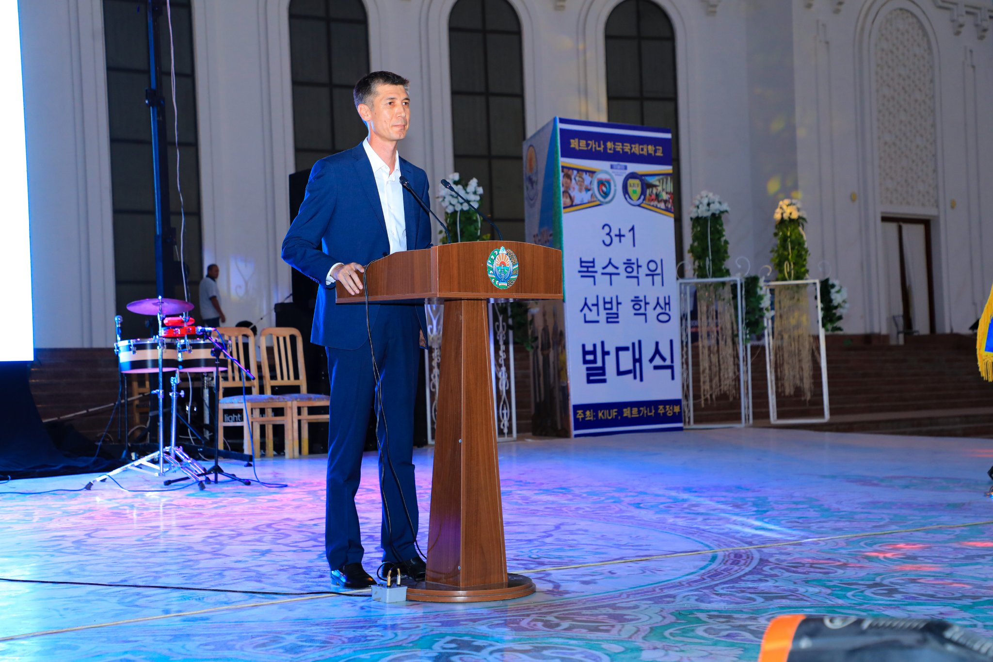 Тадбирнинг очилиш маросимида сўз олган вилоят ҳокимининг ўринбосари Иқболжон Эргашев барча йиғилганларини давлат мустақиллигининг 31 йиллик шодиёналари билан табриклаб, вилоятдаги олий таълим муассасалари, халқаро университетларда эришилаётган натижалар ҳақида тўхталди, Кореяда ўқишларини давом эттириш учун кетаётган талабаларни етук мутахассис бўлишларига ишонч билдирди.