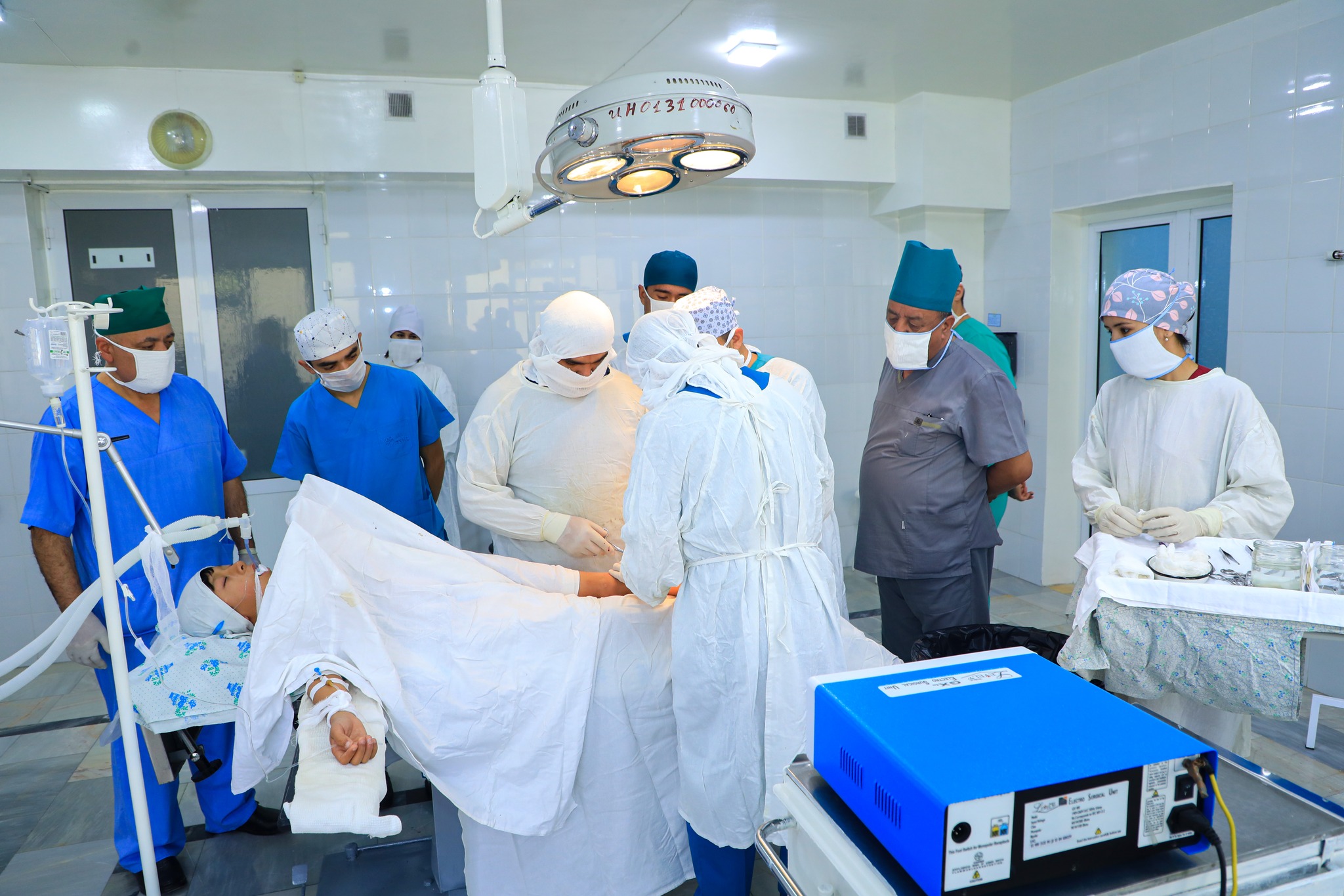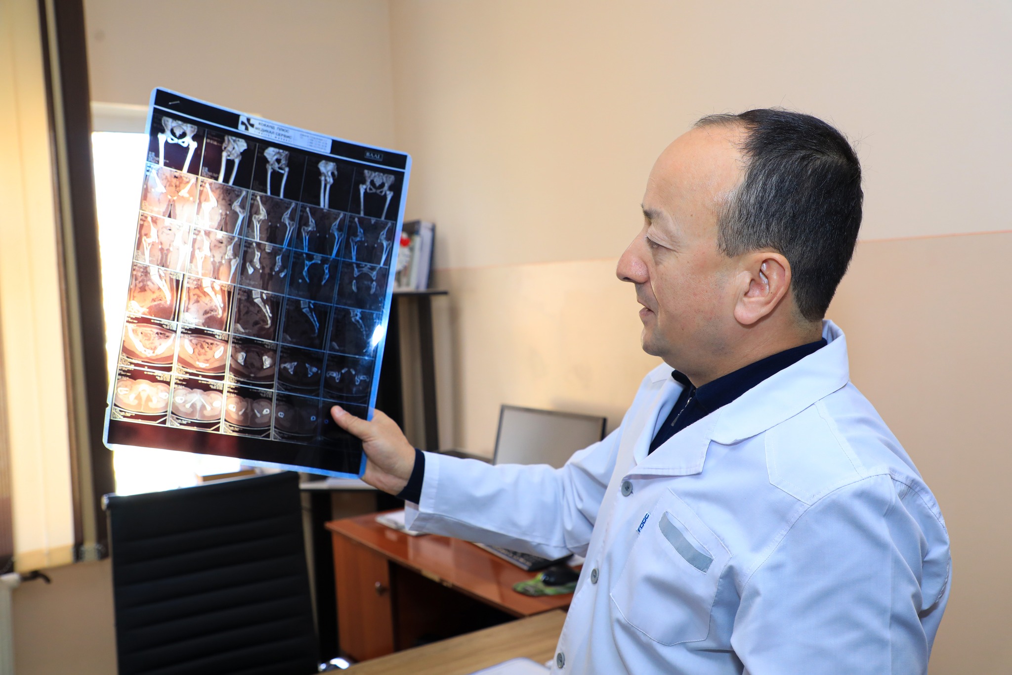 Учкўприк туманида яшовчи Диёрахон Саминова 15 ёшда. Икки йилдан буён ўнг оёғи сон соҳасида оғриқ безовта қилиб юрган. Текширувлар натижасида “Ўнг сон суяги юқори учлиги ўсмаси” ташҳиси қўйилган. Бугун беморга текширувлардан сўнг “Ўнг сон юқори учлиги ўсма экскохлеацияси, ўсма ўрнини тиббий цементопластика қилиш” амалиёти ўтказилди.